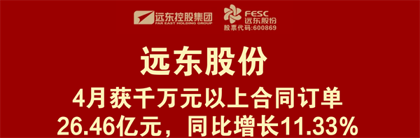 證券時報網(wǎng)訊,5月6日,遠(yuǎn)東股份(600869)發(fā)布公告,2025年4月份,公司收到子公司中標(biāo)/簽約千萬元以上合同訂單合計(jì)為人民幣26.46億元,同比增長11.33%,環(huán)比增長2.34%。1—4月,公司收到子公司中標(biāo)/簽約千萬元以上合同訂單合計(jì)為85.66億元,同比增長0.91%。